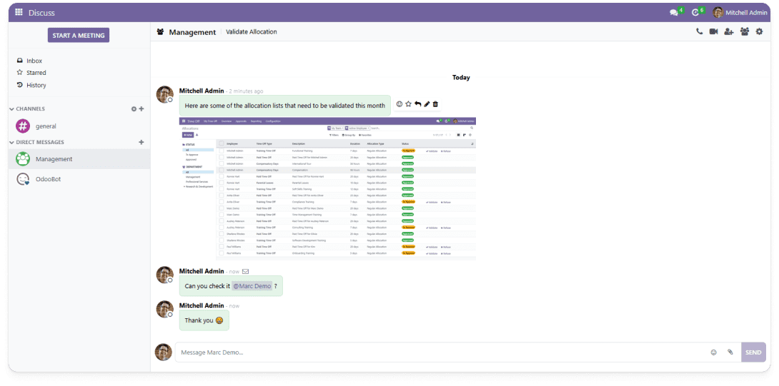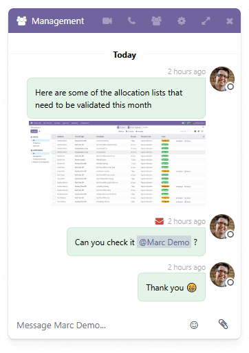 Pesan instan di antara teman kerja secara real-time selama Anda bekerja