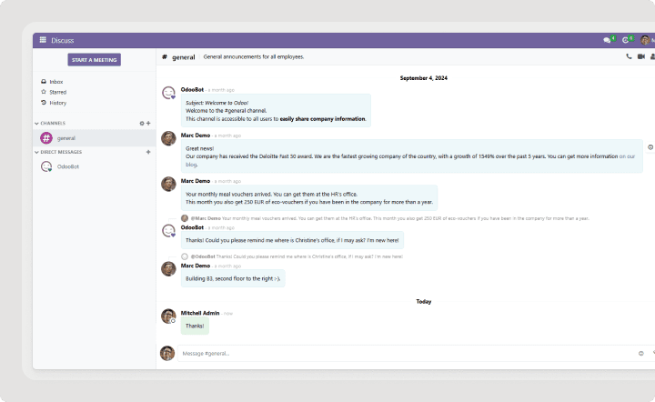 Pastikan semua orang berada di halaman yang sama dengan mengkomunikasikan pengumuman, rincian meeting dan lebih banyak lagi.