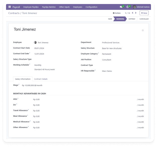 Agar karyawan dapat dibayar, diperlukan kontrak aktif. Kontrak menguraikan ketentuan posisi karyawan, kompensasi , jam kerja, dan detail lainnya tentang posisi mereka.