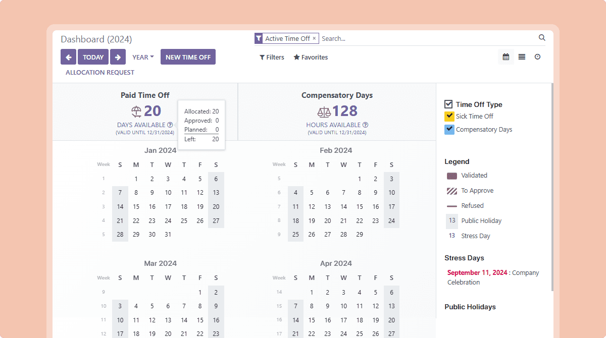 Lihat semua hari cuti Anda dalam setahun. Dari cuti yang sudah Anda gunakan sampai cuti yang menunggu disetujui, Anda tahu dengan pasti status Anda.