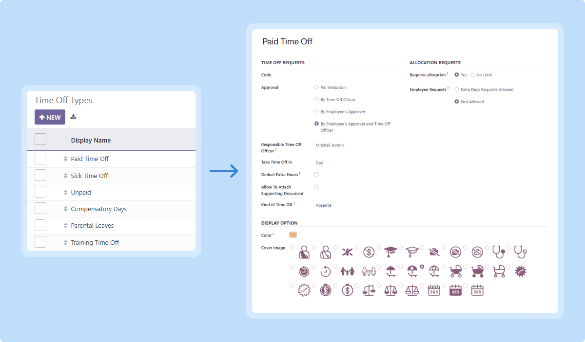 Buat sebanyak apapun tipe cuti yang dapat Anda pikirkan! Tentukan pada pengaturan approval dan validasi, atur notifikasi, dan rancang opsi tampilan agar semuanya teratur.