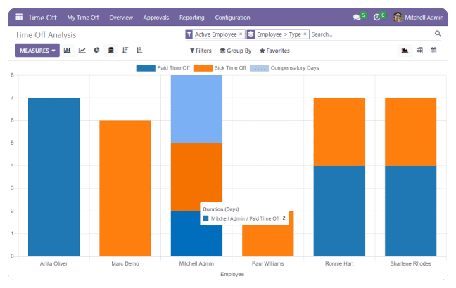 Mudah mengakses laporan lengkap untuk mengamati tren dan lihat karyawan mana yang masih memiliki cuti.